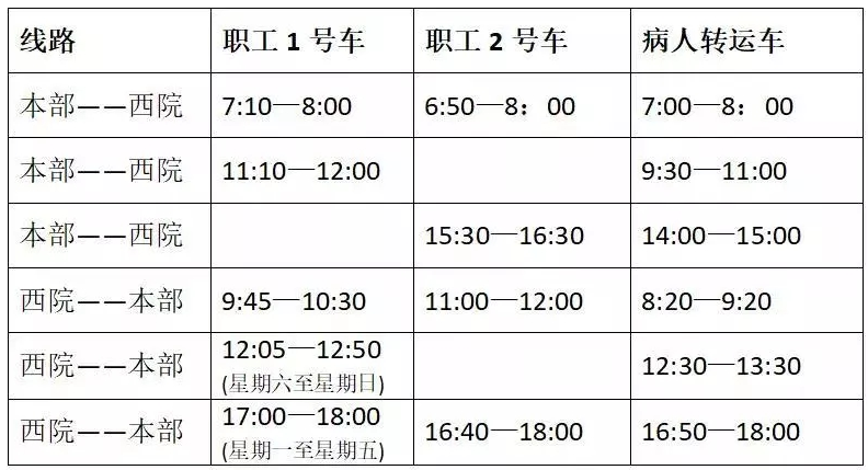 通勤车时间安排:
